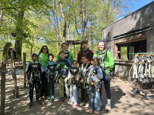 Am 26. April 2026 besucht die DLRG Jugend Wedding-Prenzlauer Berg bei bestem Outdoor-Wetter mit sieben motivierten Kindern und drei Betreuern den Hochseilgarten Jungfernheide.